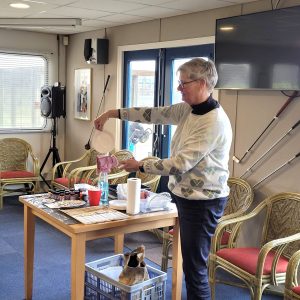 Marie Anne had het heel goed voorbereid, allerlei attributen die nodig zijn mee genomen en ze werd na afloop door iedereen bedankt en dat was ook echt op zijn plaats.